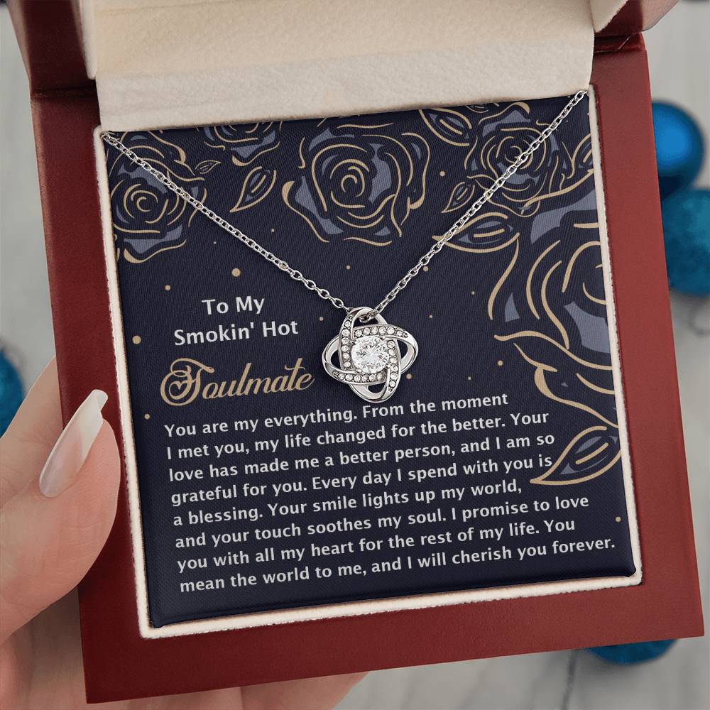 Imagine her reaction receiving this beautiful Love Knot Necklace. Representing an unbreakable bond between two souls, this piece features a beautiful pendant embellished with premium cubic zirconia crystals. Surprise your loved one with this gorgeous gift today!