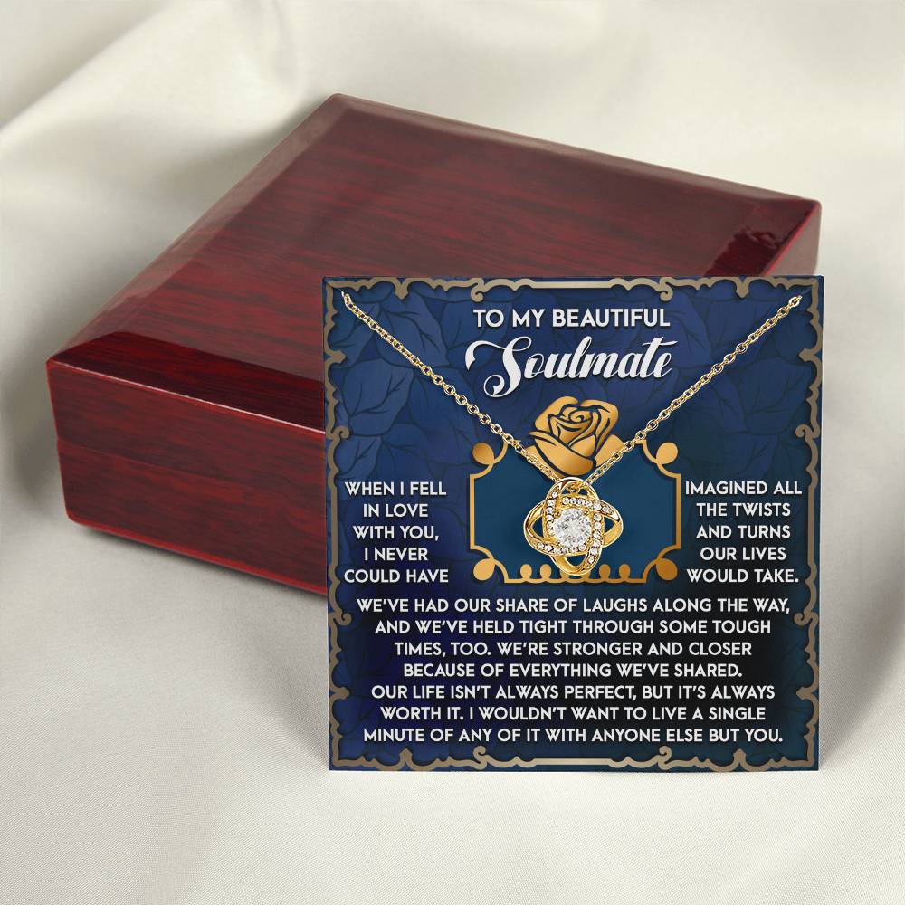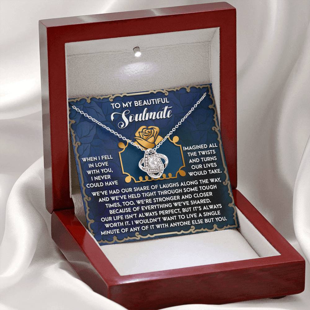 Imagine her reaction receiving this beautiful Love Knot Necklace. Representing an unbreakable bond between two souls, this piece features a beautiful pendant embellished with premium cubic zirconia crystals. Surprise your loved one with this gorgeous gift today!